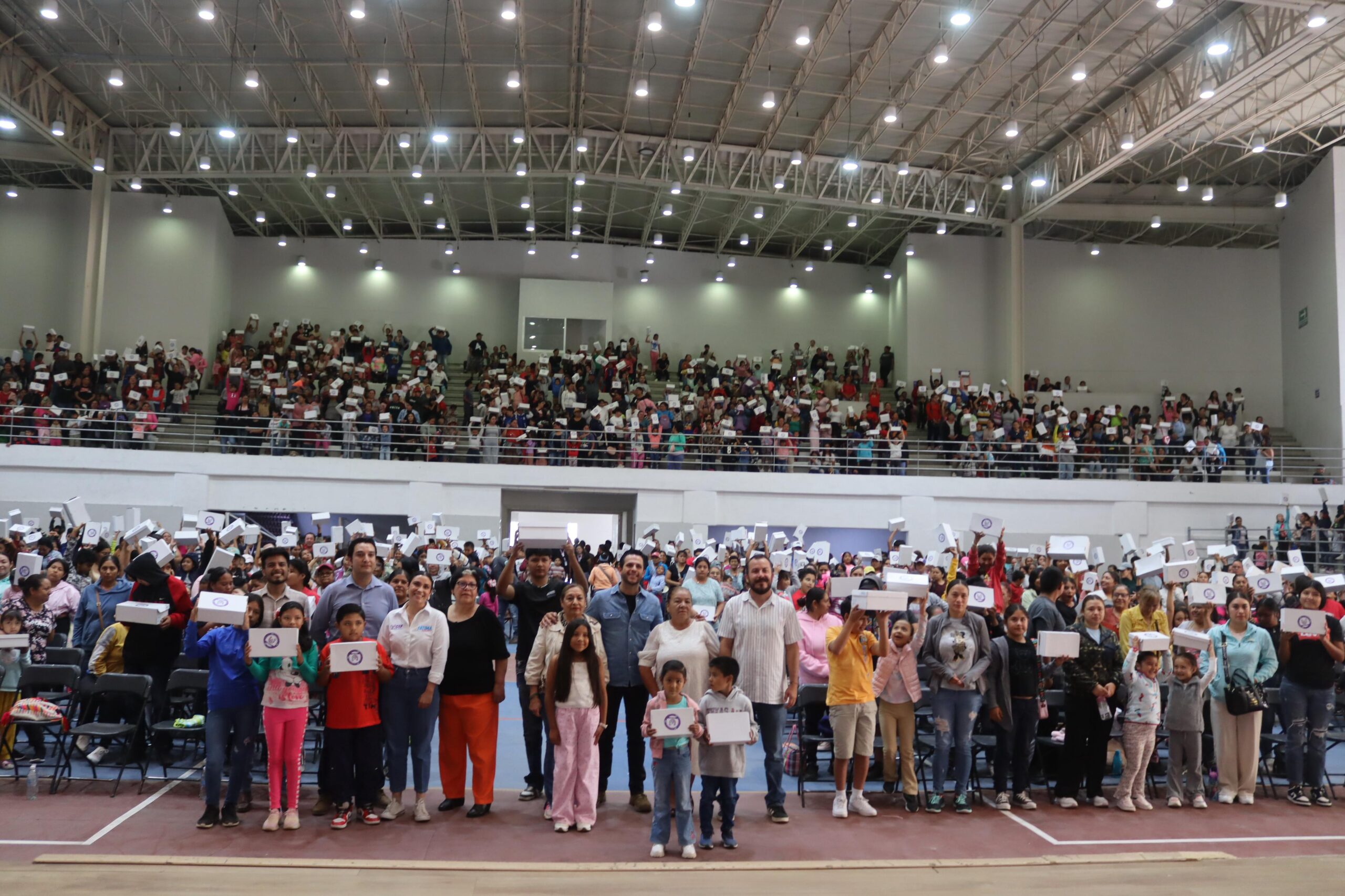 Autoridades municipales, encabezadas por el Presidente Municipal, Chelis Oliveros Usabiaga y la Presidenta del Patronato del DIF, Fátima Hernández Rivera, hicieron la entrega a los más de 2 mil niñas y niños.